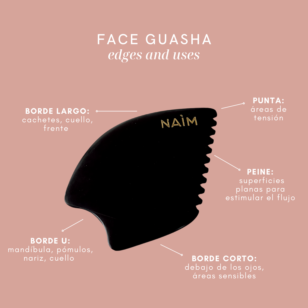 Aplique un suero o aceite facial, te recomendamos nuestro aceite de jojoba o de almendras dulces, y desliza suavemente la guasha por tu rostro, con movimientos hacia arriba y hacia afuera. Concéntrese en las áreas con tensión e hinchazón, como la línea de la mandíbula, los pómulos y el área debajo de los ojos. Úsala de 5 a 10 minutos al día para obtener resultados óptimos.