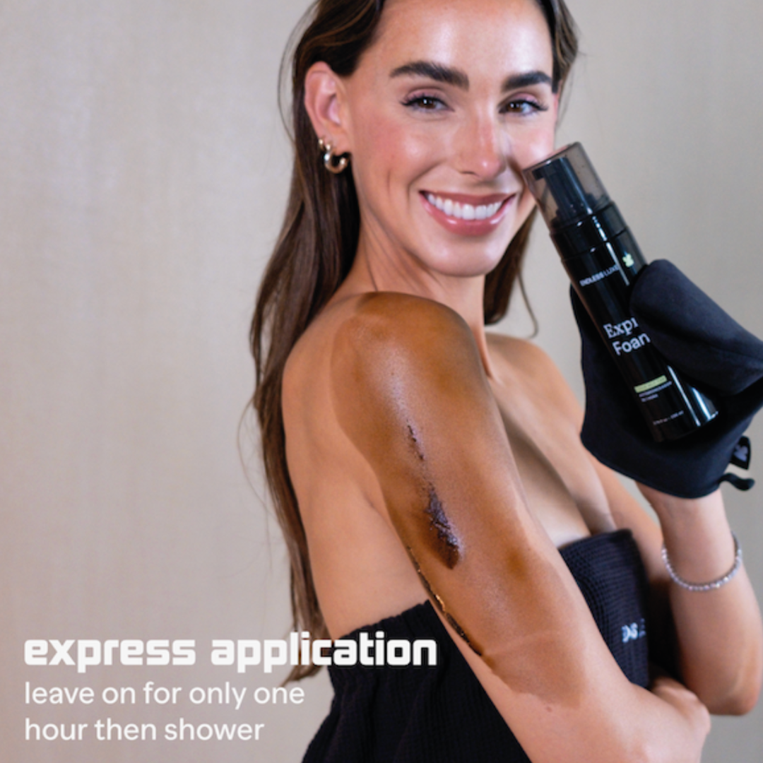 El Express Foam es una espuma autobronceadora que te ofrece un bronceado uniforme y natural de forma rápida y fácil. Con su rápida absorción y guía de tinte, estás asegurando un resultado perfecto, sin manchas. Es ideal para principiantes, solo necesitas aplicarlo, dejarlo actuar durante una hora y enjuagar con agua.