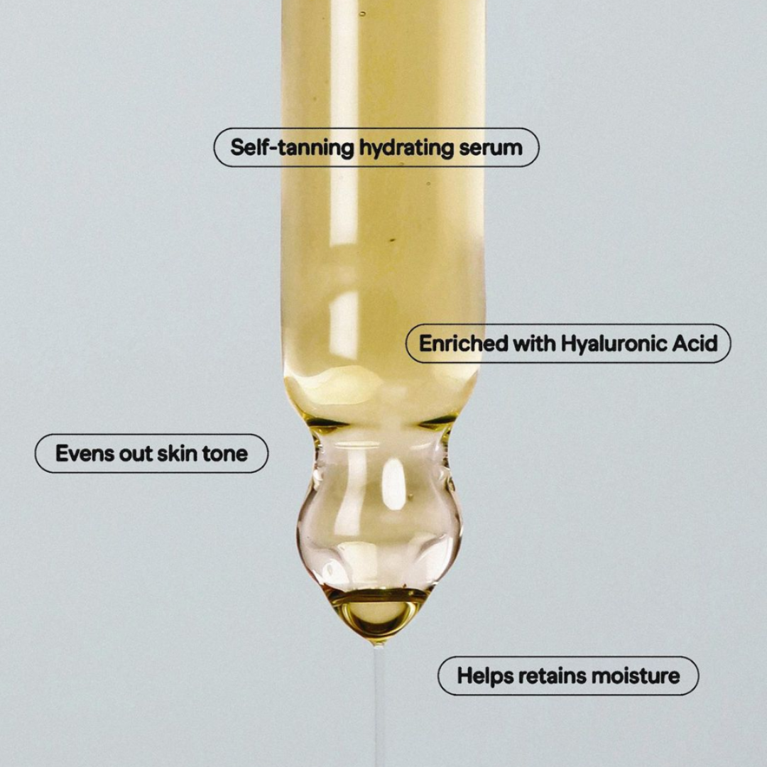 Hyaluronic Self Tan Serum: un suero formulado naturalmente, enriquecido con ácido hialurónico, vitamina C, extractos de café y más, para ayudar a igualar el tono de la piel, reducir las líneas finas y retener la humedad en la piel.