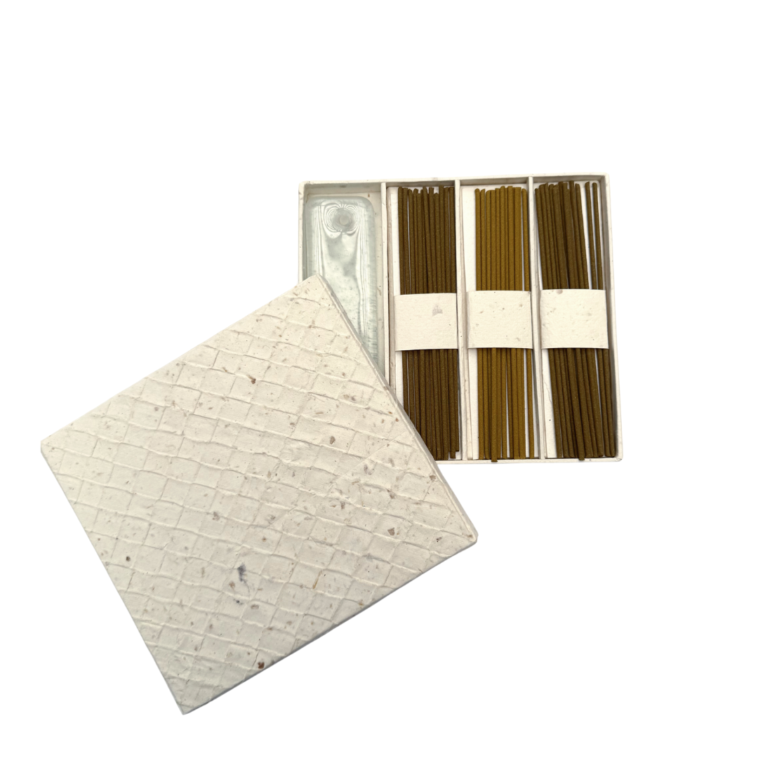 Nuestra caja de incienso japonés está hecha a mano por artesanas en Bali, con un diseño minimalista y funcional que guarda la esencia del bienestar diario.
